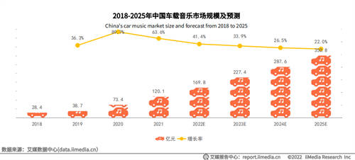 車載音樂市場也隨著汽車智能化的發(fā)展而迎來了新的高峰。艾媒咨詢最新發(fā)布的《2022年中國車載音樂前沿科技研究報告》數(shù)據(jù)顯示,2022年中國車載音樂市場規(guī)模將達(dá)169.8億元,同比增長41.4%。艾媒咨詢分析師認(rèn)為,各大車載音樂企業(yè)致力于前沿音頻技術(shù)與智能終端的結(jié)合,提升客戶體驗(yàn),市場需求將持續(xù)放量,車載音樂市場步入快速發(fā)展期。隨著車載音樂商業(yè)化模式進(jìn)一步完善,市場將持續(xù)擴(kuò)大,2025年有望突破350億元。