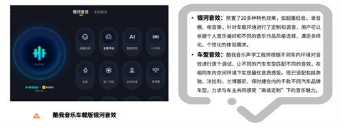 例如,2021年年初,酷我音樂建立了業(yè)內(nèi)第一家車載聲音實(shí)驗(yàn)室——酷我車載聲音實(shí)驗(yàn)室,研發(fā)出了車載黑膠、5.1環(huán)繞聲音樂、專屬汽車音效等,并搭載在比亞迪、蔚來、極氪、廣汽埃安等品牌車型中,贏得了眾多用戶青睞,受到市場認(rèn)可。